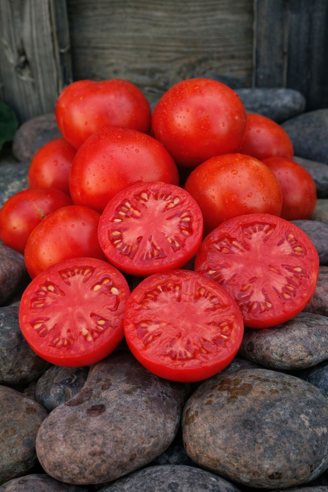 💳 Оплатить за товар можно при получении 🇰🇿 Есть бесплатная доставка по Казахстану от 1 дня 🎁 Копите бонусы с каждой покупки Сорт томата «Pum Rim» (Пум Рим, Облицовка) — среднеспелый, индетерминантный (высокорослый) сорт, достигающий 2 метров в высоту. Плоды крупные, плоскоокруглые, ярко-красные, с ребристой поверхностью и массой от 400-500 г до 1 кг при правильном уходе. Мякоть мясистая, сладкая, с небольшими пустотами в семенных камерах, что делает сорт отличным для салатов, соков и соусов. |