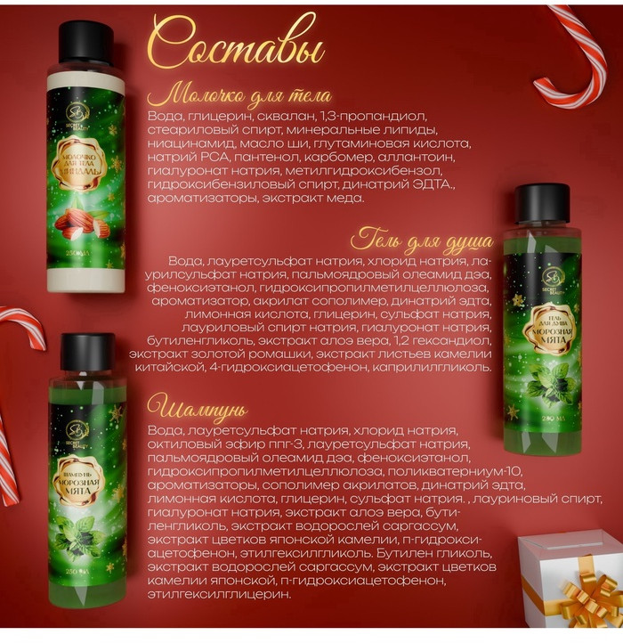 SB BEAUTY Новогодний подарочный набор косметикиВ данный момент этот товар отсутствует в продаже. Возможно, у нас найдется аналогичный или похожий товар здесь. Новогодний подарочный набор косметики SB Beauty — идеальный выбор для тех, кто хочет подарить не только заботу, но и атмосферу праздника. Этот набор включает в себя три незаменимых средства для ухода, каждое из которых подарит ощущение свежести и уюта в зимние дни. |