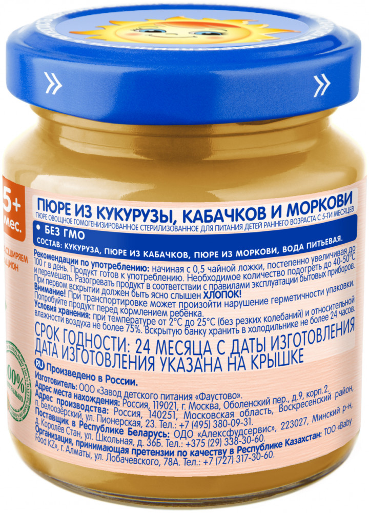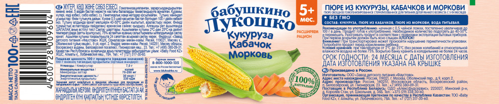 Бабушкино Лукошко Набор пюре детского «Кукуруза, кабачок, морковь»