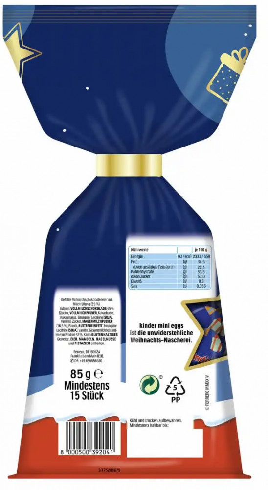 Kinder Шоколадные мини-яйца с молочно-кремовой начинкой «Mini Eggs Milk»