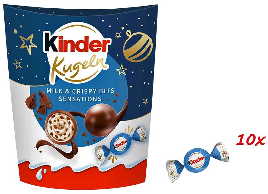 Kinder Шоколадные конфеты-шарики с молочным кремом и воздушным рисом «Kugeln Milk & Crispy Bits Sensations»