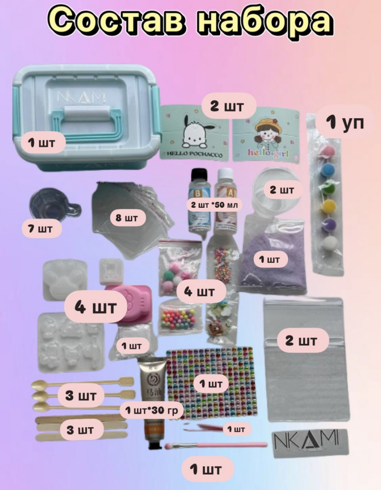 💳 Оплатить за товар можно при получении 🇰🇿 Есть бесплатная доставка по Казахстану 🎁 Копите бонусы с каждой покупки Набор для создания сквишей от бренда NKAMI. Этот набор не только развивает мелкую моторику у детей, но и позволяет им проявить свою фантазию и креативность. Сквиши производятся из высококачественного силикона и безопасен для взрослых и детей. |