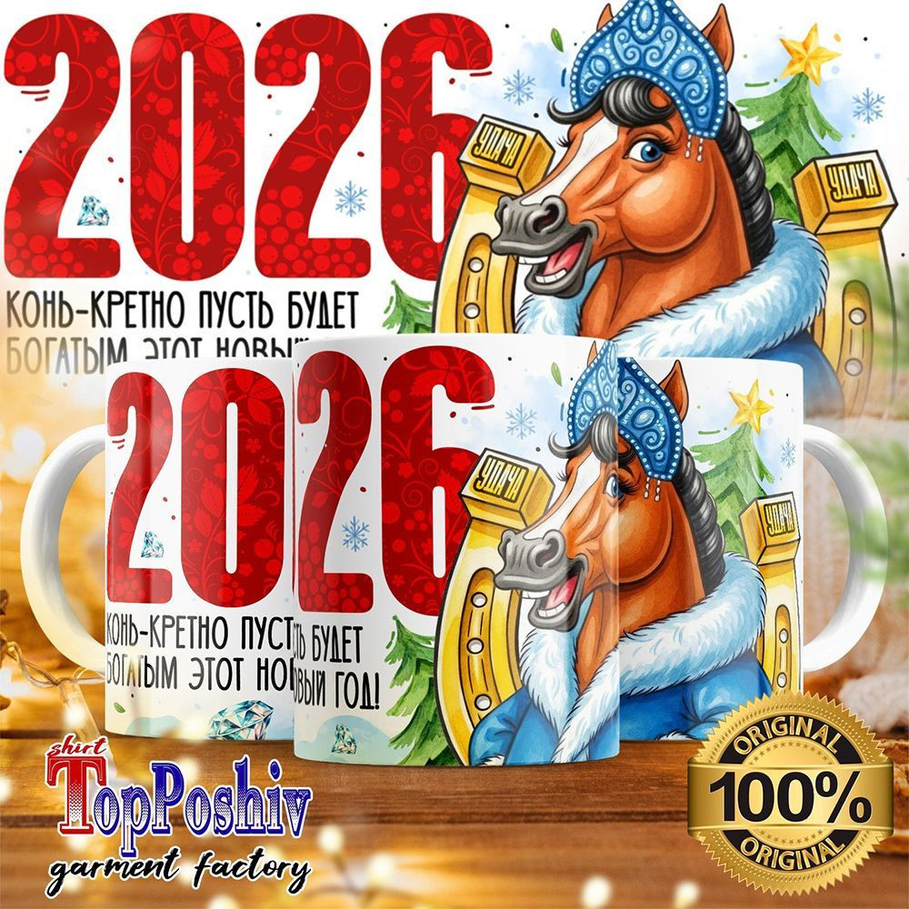 TopPoshiv Кружка с принтом «2026 конь-кретно пусть будет богатым»-25% +15