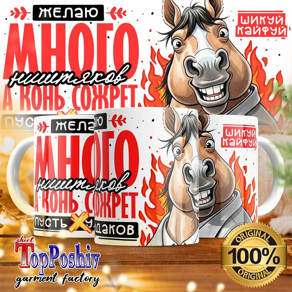 TopPoshiv Кружка с принтом «Желаю много ништяков, а конь сожрет всех дураков»-25% +15