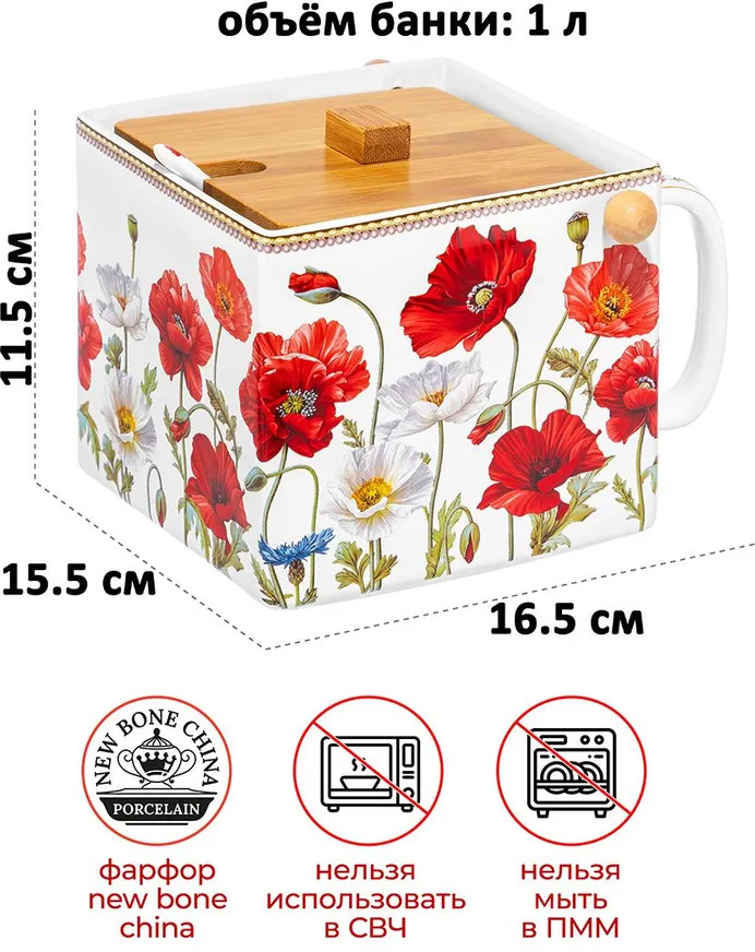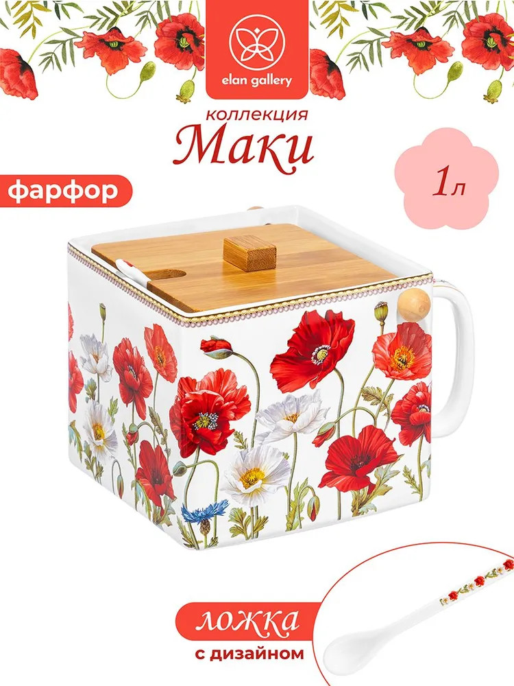 Elan Gallery Банка для сыпучих продуктов с крышкой и ложкой «Маки»