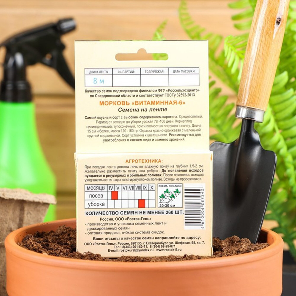 💳 Оплатить за товар можно при получении 🇰🇿 Есть бесплатная доставка по Казахстану 🎁 Копите бонусы с каждой покупки Популярный среднеспелый сорт, формирует урожай за 100-120 дней от всходов. Корнеплоды сортотипа Берликум-Нантская, массой 100-165 г, отличного вкуса, с высоким содержанием каротина. Урожайность высокая — 6-8 кг/м 2 . Лежкость хорошая. Рекомендуется для свежего потребления и длительного зимнего хранения. Семена на ленте — очень просто и удобно! Семена тщательно подготовлены к посеву и находятся между двумя тонкими слоями ленты, полностью растворимой во влажной среде. Материал ленты — 100% целлюлоза, не содержит клея. Технология запатентована. Общая длина ленты — 8 м. Лента состоит из трех частей. Перед использованием их нужно отделить друг от друга и расправить. Длина каждой части — 2,67 м. На каждой части располагаются ≈ 80 семян моркови (всего ≈ 240 шт.). |