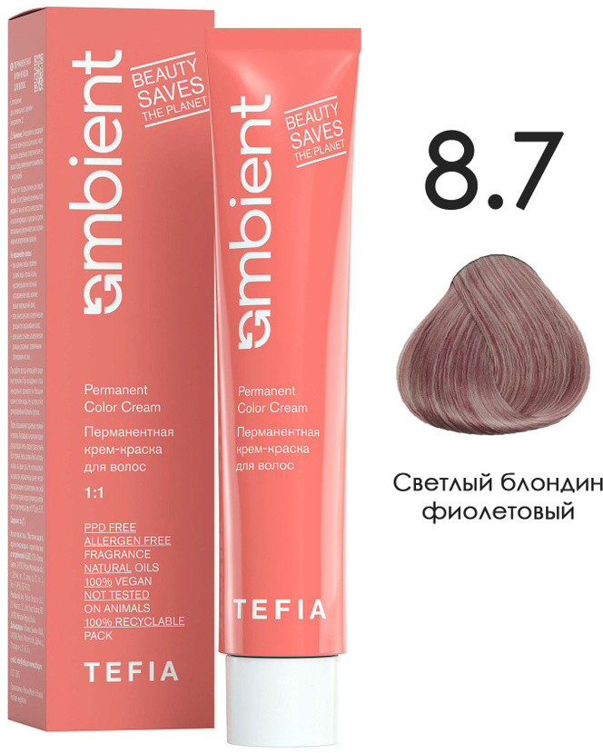 Tefia Крем-краска для волос перманентная, оттенок 8.7 Светлый блондин фиолетовый