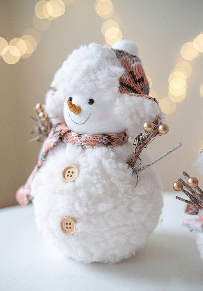 Мягкая новогодняя игрушка «Снеговик» — тёплый и уютный декор для дома. Выполнен из пушистого текстиля, с аккуратной вышивкой лица, вязаной шапочкой и шарфом. Декорированные веточки и пуговицы придают игрушке особый шарм. Идеально для праздничного интерьера, подарка или фотозоны. |