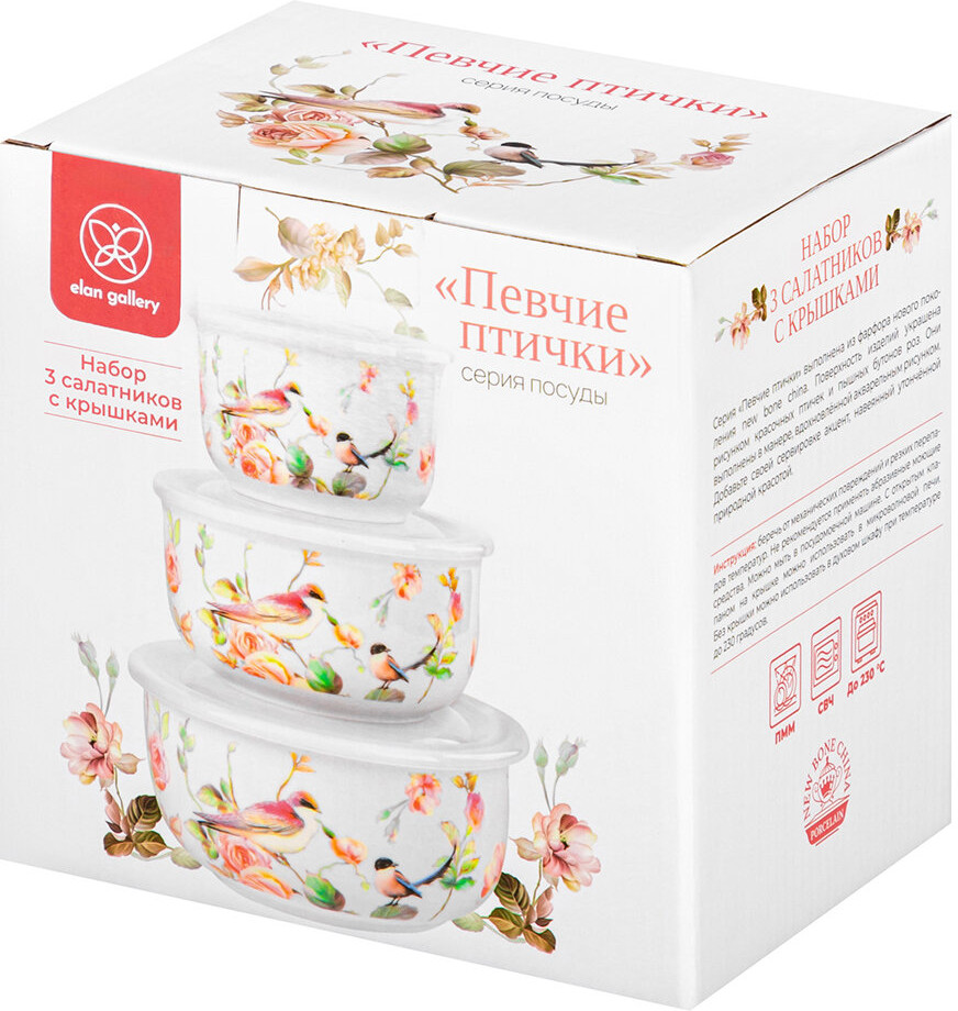 Elan Gallery Набор салатников с крышками «Певчие птички»-20%