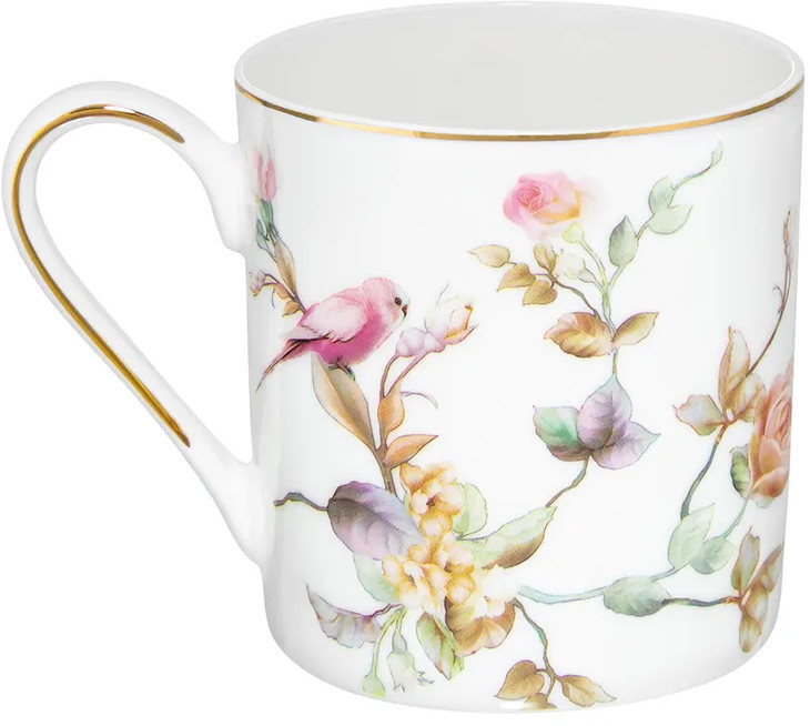 Серия: Певчие птички Кружка из серии «Певчие птички» от Elan Gallery предназначена для эстетичной сервировки вашего стола. Размер ёмкости — 10.5×7х8 см, объём — 250 мл. Выполнена из фарфора нового поколения new bone china, сочетающего в себе изящность и высокую прочность. Такие изделия легко отмываются, поэтому сохраняют привлекательный вид и практичны в использовании. От других видов костяного фарфора new bone china отличается большей экологичностью в производстве. Изделие украшено рисунком пёстрых птичек и пышных бутонов роз. Они выполнены в манере, вдохновлённой акварельным рисунком. Тонкая золотистая окантовка служит деликатным акцентом и подчёркивает их изысканность. |