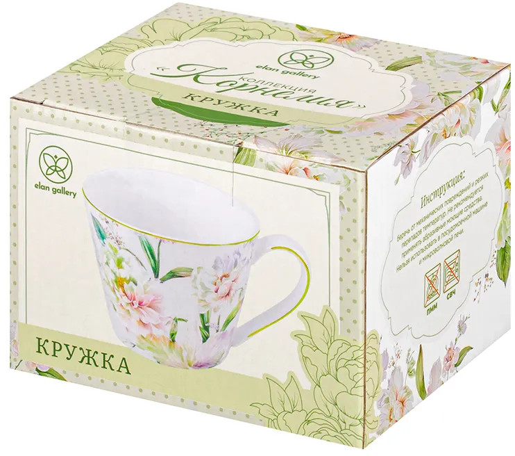 💳 Оплатить за товар можно при получении 🇰🇿 Есть бесплатная доставка по Казахстану 🎁 Копите бонусы с каждой покупки Серия: Корнелия Кружка из серии «Корнелия» от Elan Gallery предназначена для эстетичной сервировки вашего стола. Размер ёмкости — 13.5×10.5×8.5 см, объём — 420 мл. Выполнена из фарфора нового поколения new bone china, сочетающего в себе изящность и высокую прочность. Такие изделия легко отмываются, поэтому сохраняют привлекательный вид и практичны в использовании. От других видов костяного фарфора new bone china отличается большей экологичностью в производстве. Поверхность изделий овивают изображения обворожительных белых пионов. Они выполнены в манере, вдохновлённой акварельным рисунком. Тонкая золотистая окантовка служит деликатным акцентом и подчёркивает их изысканность. Кофейная кружка поможет вам провести множество приятных завтраков с капучино и латте, а также уютные чайные вечера с конфетами, вафлями, другими десертами и сладостями. |