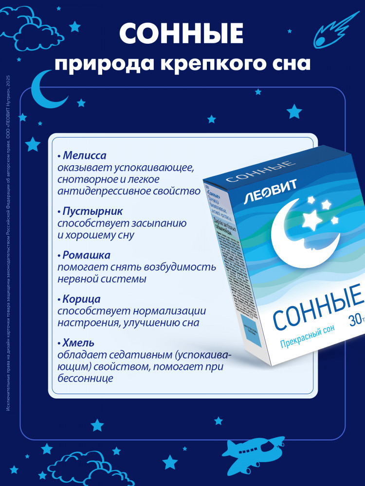 Леовит нутрио Таблетки для сна с пустырником «Сонные»В данный момент этот товар отсутствует в продаже. Возможно, у нас найдется аналогичный или похожий товар здесь. Глубокий, крепкий сон важен для правильной работы всех органов организма. БАД «Сонные» от Леовит способствуют глубокому и продолжительному сну, обеспечивают более быстрое засыпание, снимают ощущение разбитости при пробуждении. Компоненты БАДа традиционно применяют при нарушениях сна и бессоннице: пустырник способствует засыпанию и хорошему сну; мелисса, ромашка и хмель обладают седативным (успокаивающим) действием; бром нормализует состояние нервной системы. |
