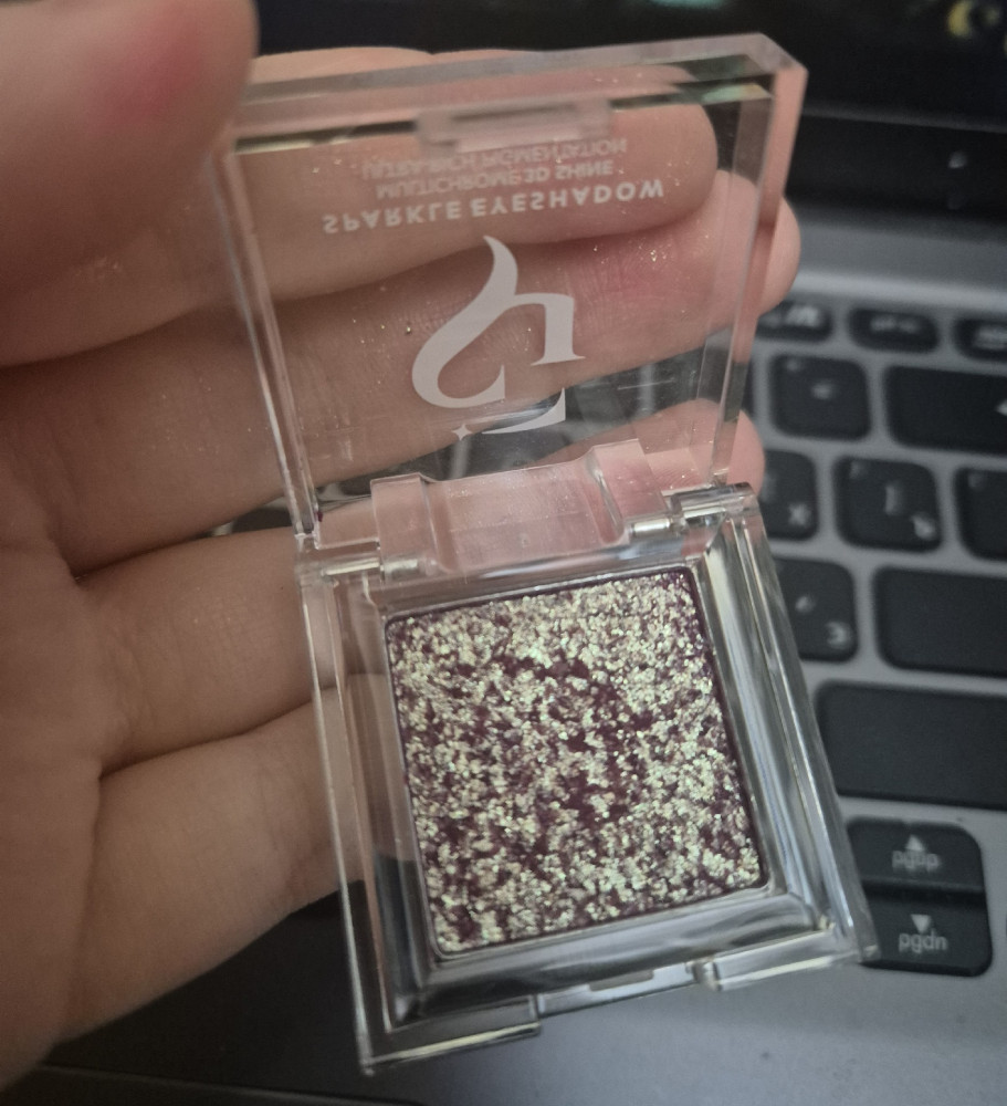 у меня есть другие спарклы, они легко наносятся пальцем на веко. с этими тенями так не получится. Плохо ложатся, зелёный оттенок живёт своей жизнью, пятнами переносится на веко. Блёстки крупные, сложно наносить