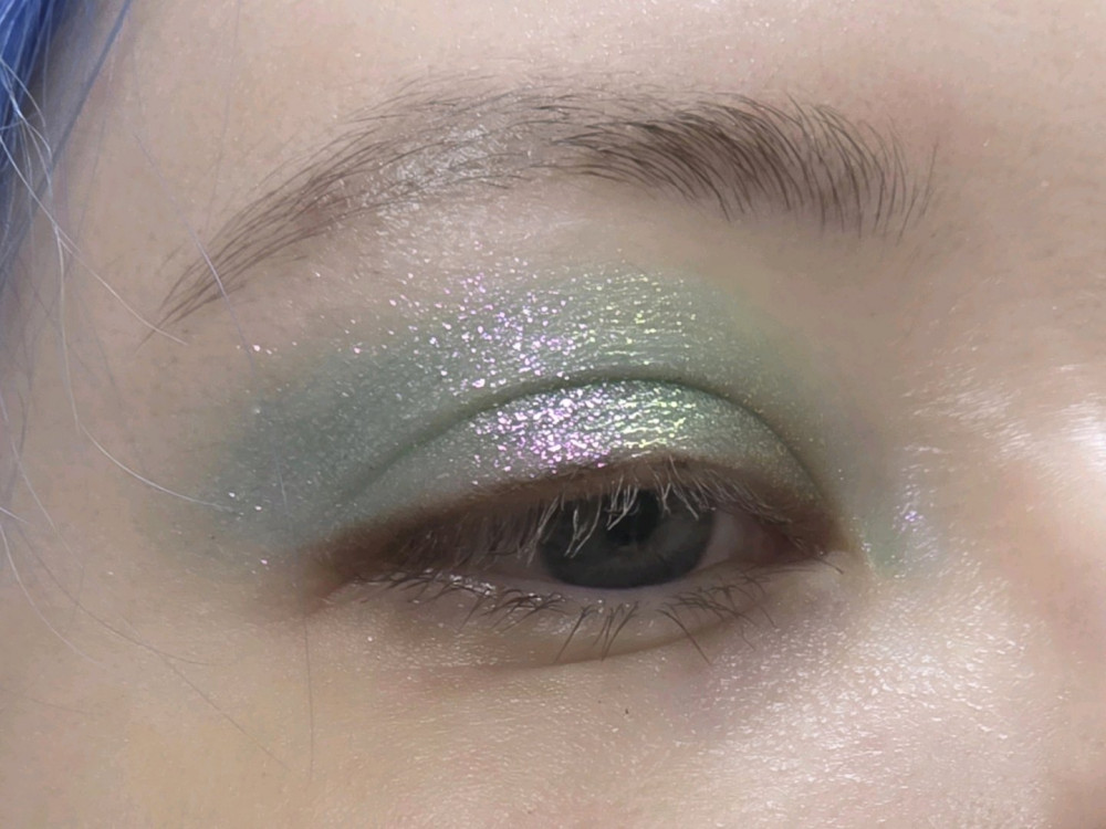 зелёный цвет плохо ложится на веко отдельно от спарклов