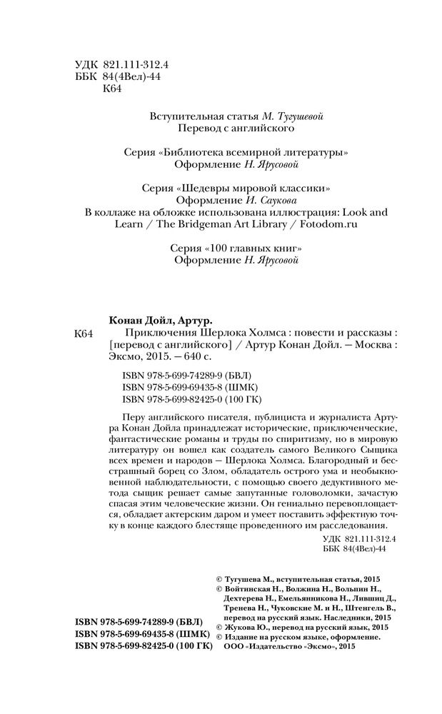 Приключения Шерлока ХолмсаВ данный момент этот товар отсутствует в продаже. Возможно, у нас найдется аналогичный или похожий товар здесь. Серия: 100 главных книг Перу английского писателя, публициста и журналиста Артура Конан Дойла принадлежат исторические, приключенческие, фантастические романы и труды по спиритизму, но в мировую литературу он вошел как создатель самого Великого Сыщика всех времен и народов — Шерлока Холмса. Благородный и бесстрашный борец со Злом, обладатель острого ума и необыкновенной наблюдательности, с помощью своего дедуктивного метода сыщик решает самые запутанные головоломки, зачастую спасая этим человеческие жизни. Он гениально перевоплощается, обладает актерским даром и умеет поставить эффектную точку в конце каждого блестяще проведенного им расследования. |