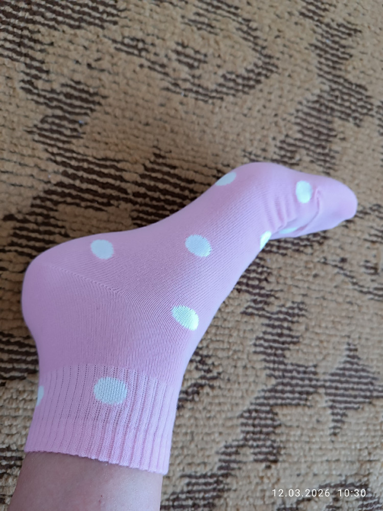 Прелестные носочки х/б, мягкие, комфортные, взяла размер побольше, резинка не давит, на ступне сидят свободно. Обожаю все розовое.