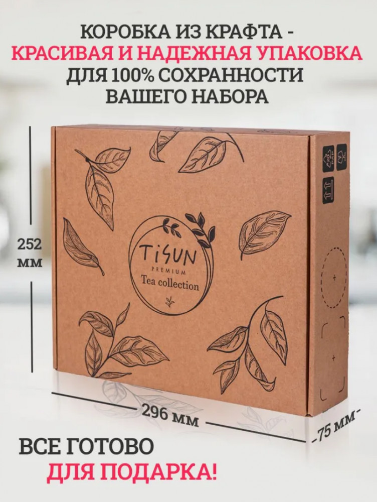 Такой подарок на 14 февраля девушке или парню продуман до мелочей: наполнение и стильная коробка делают его отличным подаркомна 23 февраля мужчинам коллегам или любимому, а также как подарок мужчине или подруге на день рождения — полностью готовым к вручению. Это не чай в пакетиках, здесь нет пыли и ломаных частиц, только цельный лист, который при заваривании раскрывает насыщенный вкус. Натуральный состав без ГМО и ароматизаторов подчёркивает его качество и чистоту вкуса.