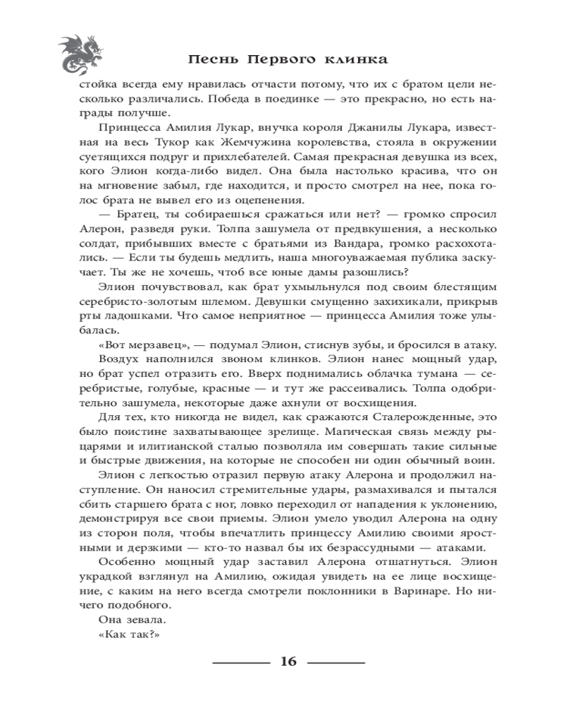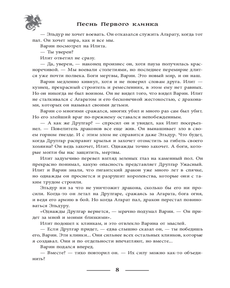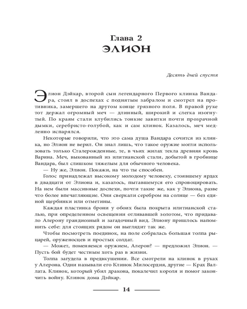 💳 Оплатить за товар можно при получении 🇰🇿 Есть бесплатная доставка по Казахстану от 1 дня 🎁 Копите бонусы с каждой покупки Серия: Nova Fiction. Мастера зарубежной эпической фэнтези Боги пали в великой войне. Предвидя, что однажды дракон Друлгар Ужасный проснется и отомстит за гибель своего божества, полубог Илит создает магические мечи. Но утаивает главный секрет их могущества, опасаясь, что огромная сила приведет мир к гибели. Спустя 3500 лет королевства людей оказываются на пороге войны. Потомкам полубогов Сталерожденным, кому подчиняются магические клинки, противостоят Огнерожденные, кто управляет драконами. Беззаботный дворянин Элион, беглая служанка Шаска и наемный убийца Йоник оказываются в гуще событий. Каждому из них предстоит узнать, что такое сомнения и ненависть. Союзы рушатся, верные друзья предают. И в стороне не сможет остаться никто. |
