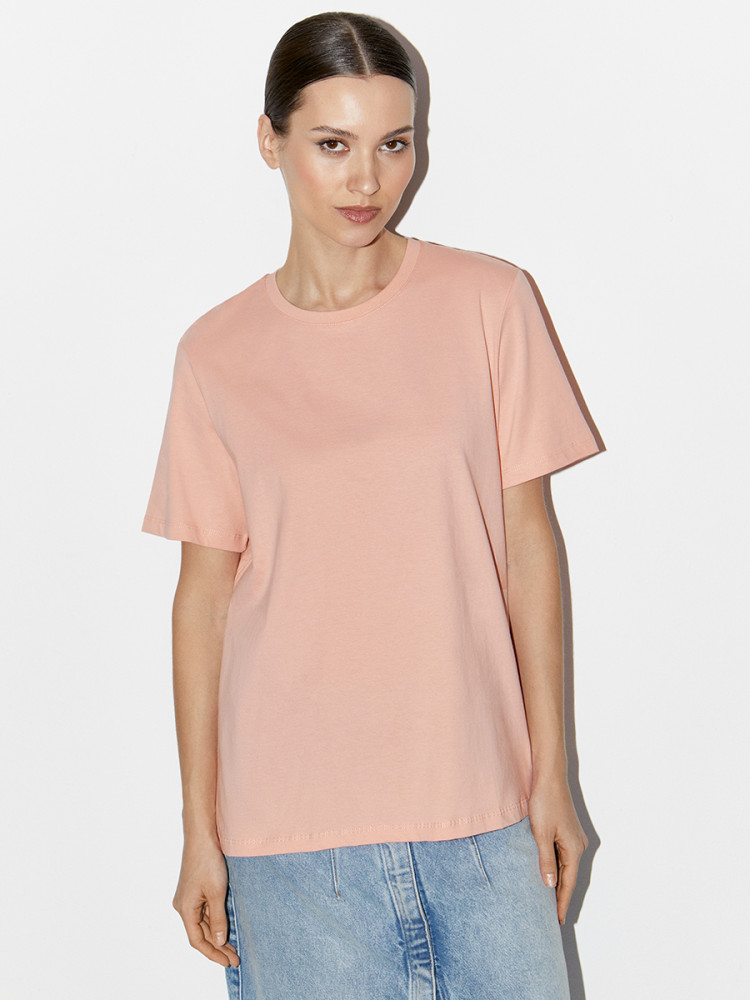 Женская футболка с круглым вырезом горловины с коротким рукавом. Изготовлена из высококачественного 100% хлопка, который обладает высокой воздухопроницаемостью, отлично впитывает влагу и подходит для чувствительной кожи. Комфортно ощущается благодаря свободному силуэту, и стильно смотрится благодаря лаконичному дизайну. Футболка универсально подойдет и в качестве повседневной базовой, и для занятий спортом.