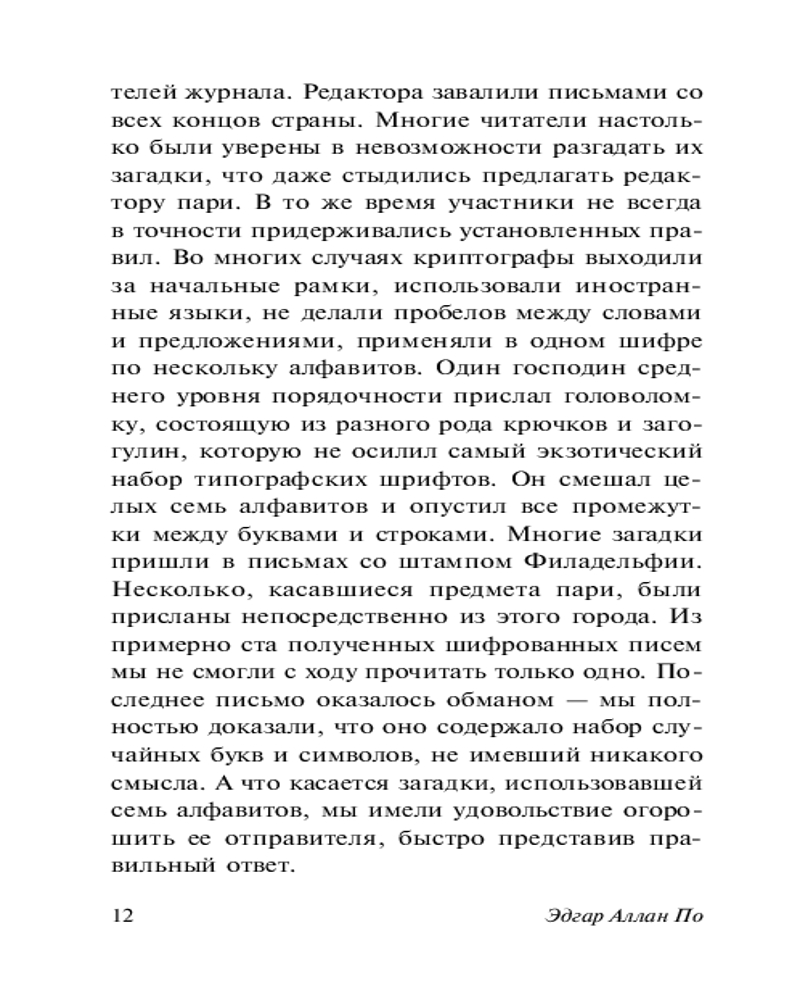 💳 Оплатить за товар можно при получении 🇰🇿 Есть бесплатная доставка по Казахстану 🎁 Копите бонусы с каждой покупки Серия: Эксклюзивная классика Большинство читателей знают Эдгара Аллана По как автора детективных и фантастических рассказов, но его перу также принадлежат многочисленные эссе и статьи на разнообразные темы, начиная от расшифровки кодов и размышлений о кошках, заканчивая рассуждениями о тайнах Вселенной. Одним из интересов По была криптография, которой он посвятил статью «Несколько слов о тайнописи» и изложил в ней свои соображения о расшифровке кодов. Еще одним интересом По были кошки, вернее, кошка Каттарина, которая прожила с ним почти десять лет и вдохновила автора на написание эссе «Инстинкт против разума – черная кошка», в нем писатель утверждает, что инстинкт животных может быть более мощной силой, чем человеческий ум. В настоящий сборник также включены эссе о литературе и поэма в прозе «Эврика», которую писатель считал главным делом всей своей жизни. |