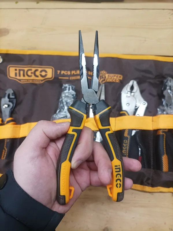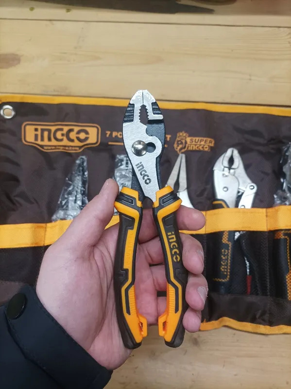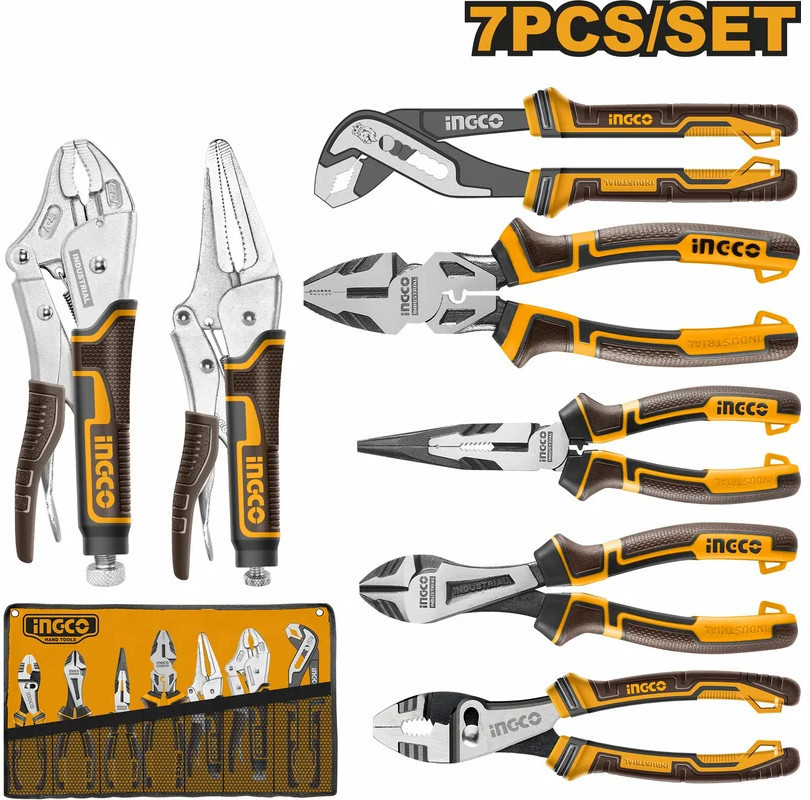 Набор шарнирно-губцевого инструмента INGCO Industrial (7 предметов) представляет собой профессиональный комплект, предназначенный для выполнения различных слесарных и монтажных работ. Он включает в себя семь инструментов, каждый из которых выполняет специфические функции.