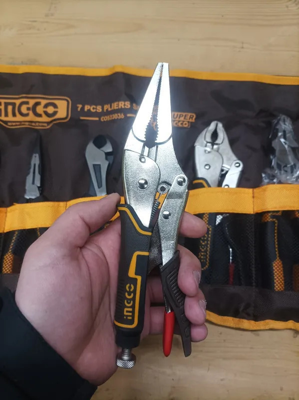 • клещи зажимные с длинным носом 230 мм INGCO Industrial — 1 шт.;
