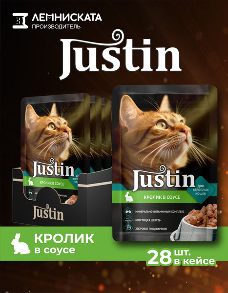Justin Набор корма влажного для кошек «Кролик в соусе»