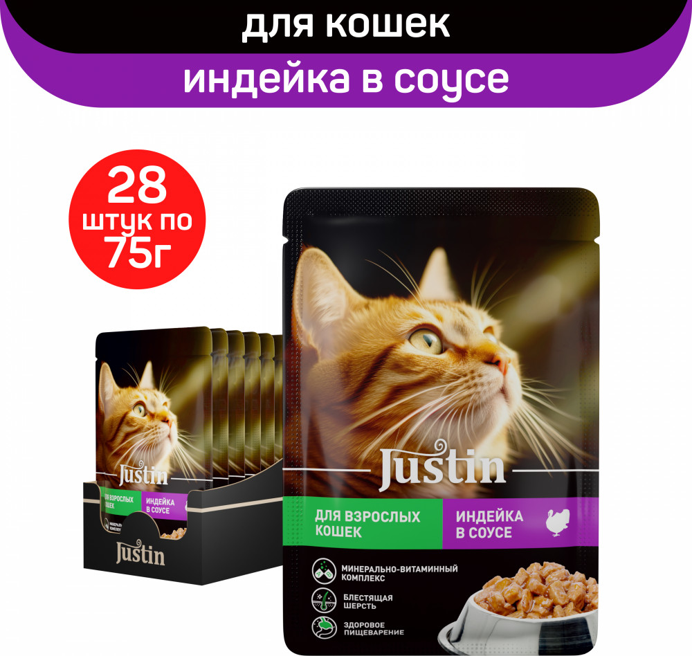 Justin Набор корма влажного для кошек «Индейка в соусе»
