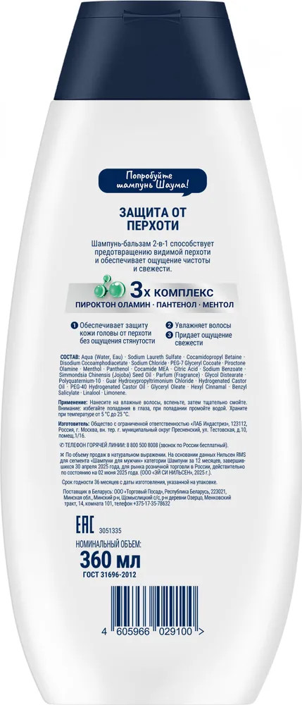Schauma Шампунь-бальзам для волос мужской 2 в 1 «Защита от перхоти»