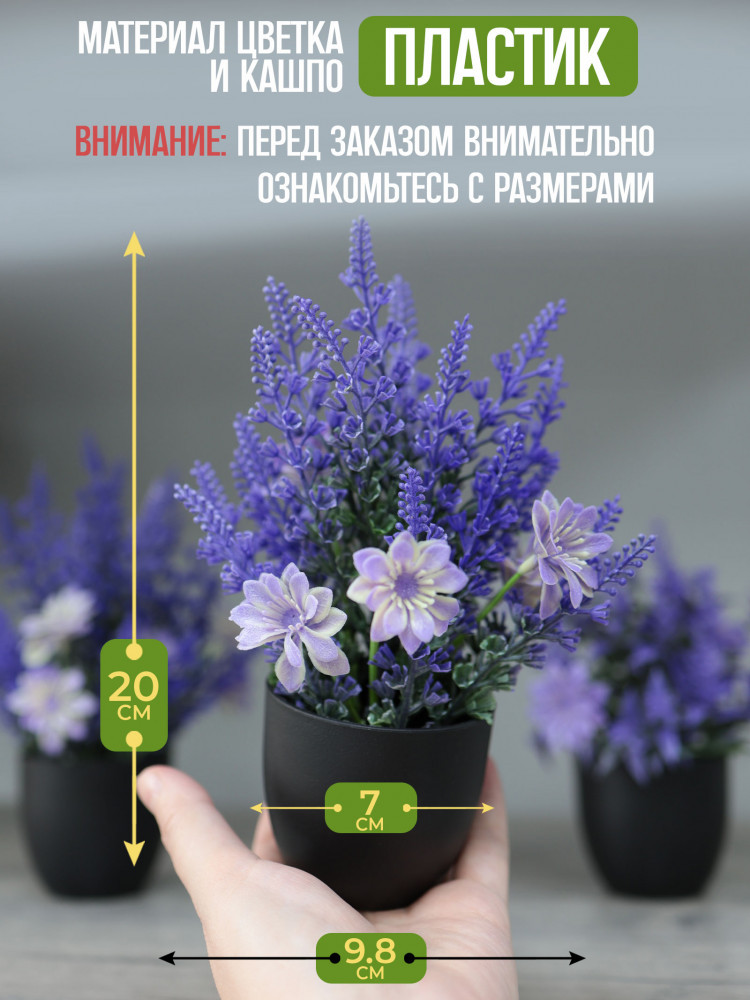 Набор цветов искусственных в кашпо включает три миниатюрных цветка, выполненных из высококачественного пластика. Главное преимущество таких растений — отсутствие необходимости в поливе и удобрении, что позволяет сэкономить время и силы. Каждый цветок имеет уникальную длину и форму листьев: от коротких до вытянутых, что открывает возможности для создания стильных композиций и украшений. Вы можете разместить их вместе для создания гармоничного букета или использовать по отдельности — даже один цветок станет замечательным акцентом для декора интерьера