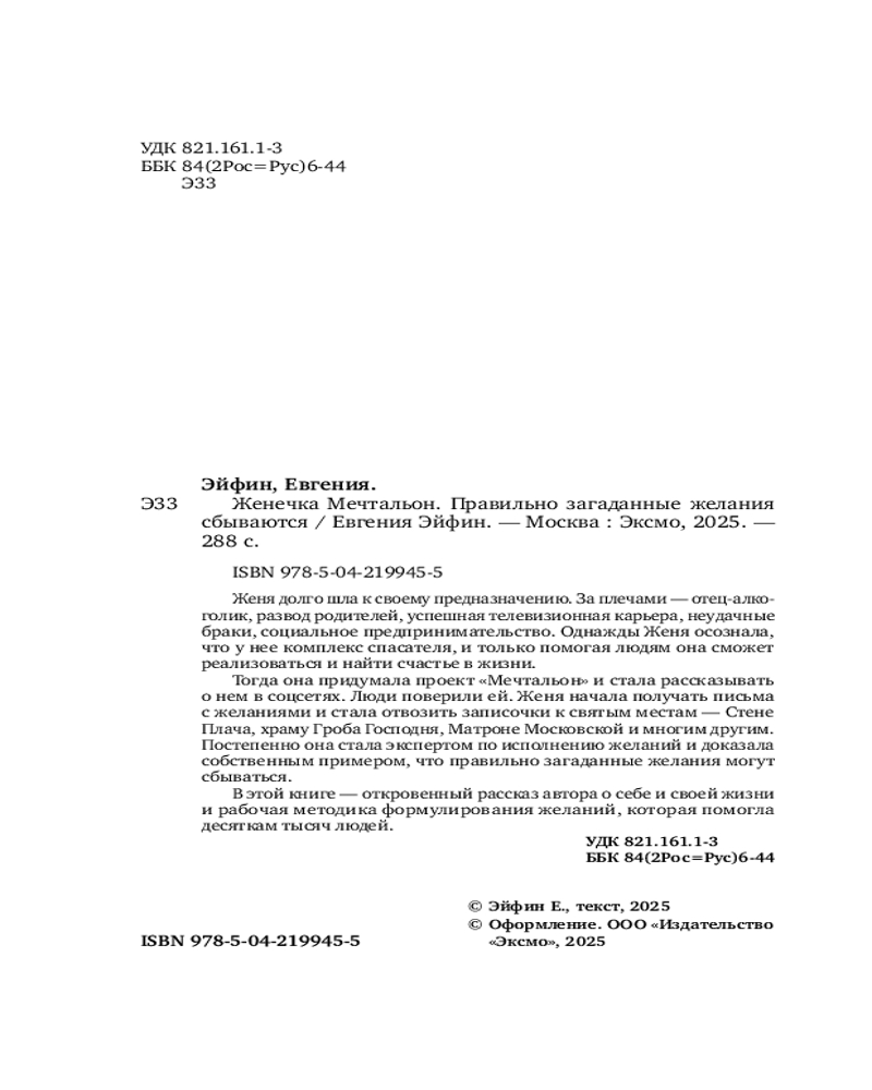 💳 Оплатить за товар можно при получении 🇰🇿 Есть бесплатная доставка по Казахстану 🎁 Копите бонусы с каждой покупки Серия: Мозаика жизни. Книги от русских блогеров История, которая вдохновит тебя исполнить свои мечты! Женя — самая юная телеведущая и победительница легендарных проектов 1990-х — 2000-х: «Пойми меня», «Звездный час», «Полундра», «Сейчас спою». Но за яркой карьерой скрывалась личная драма — долгие годы она спасала своих близких, пока однажды не поняла: пора спасти себя. |