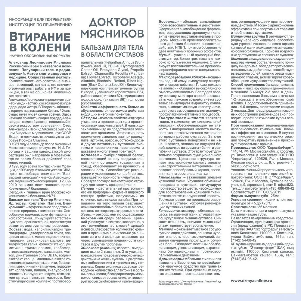 Доктор Мясников Бальзам для тела в области суставов «Втирание в колени»+48