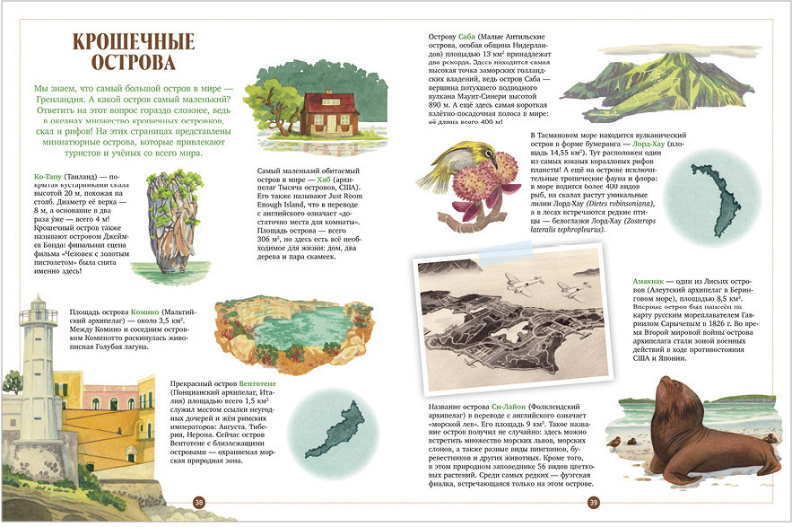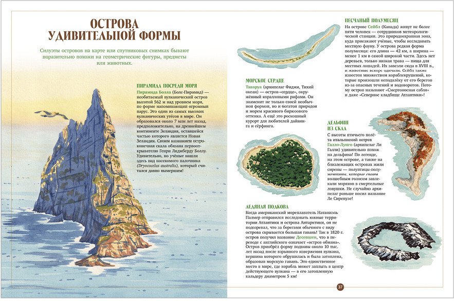 На Земле около 500 тысяч островов — гигантских и совсем маленьких, необитаемых и застроенных небоскребами, покрытых ледниками и лесами. У каждого — своя история открытия, неповторимый животный и растительный мир. С этой книгой вы совершите путешествие по самым необычным островам Земли и раскроете их тайны.