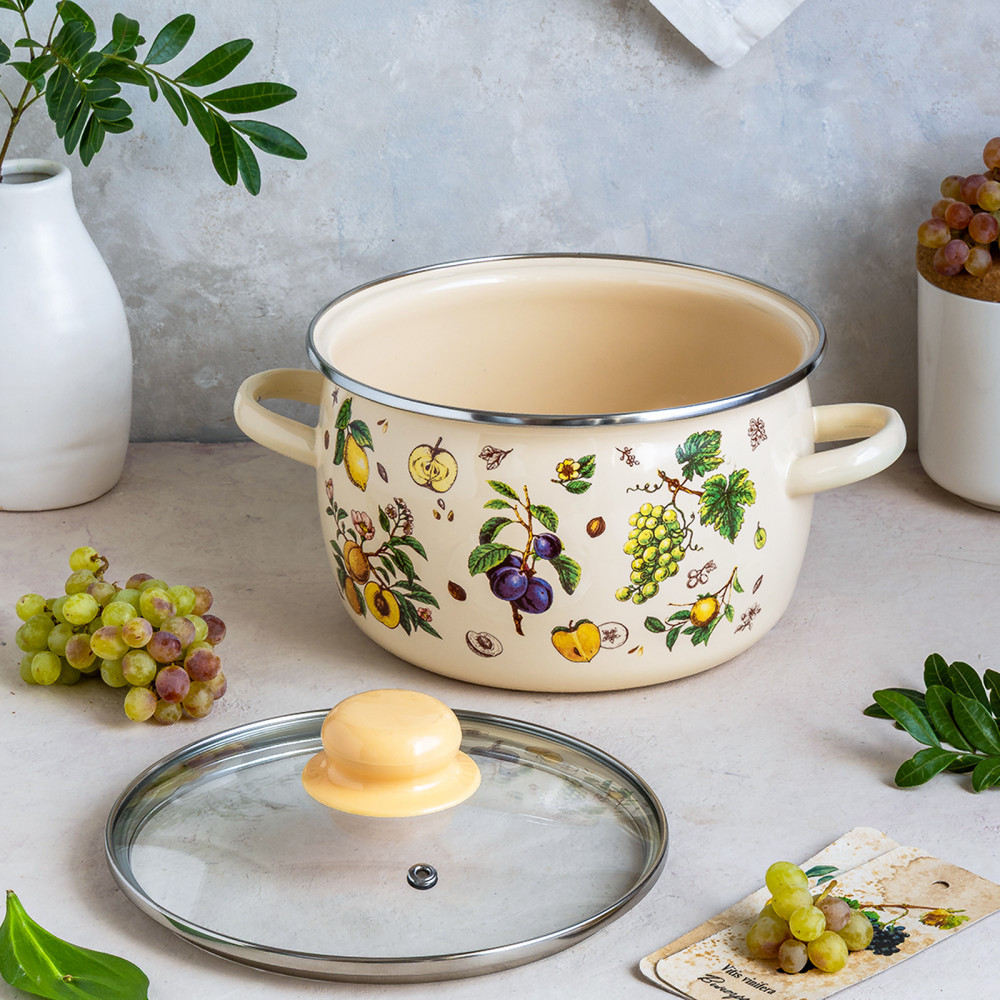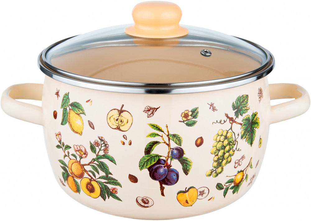 Appetite Кастрюля эмалированная сферическая с крышкой «Фруктовый сад»
