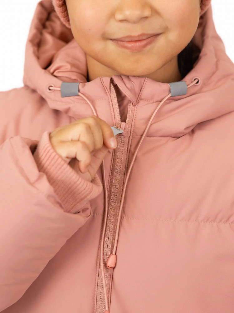 Зимний пуховик для девочек — удлинённая и тёплая модель, созданная для суровой и ветреной зимы. Верх выполнен из водостойкой и дышащей мембраны 5000, которая защищает от промокания и обеспечивает комфорт в холодную погоду. Пуховик рассчитан на температурный режим до –30 °C. Тефлоновая пропитка отталкивает воду и грязь, а лёгкий утеплитель SEE® сохраняет тепло и устойчив к сминанию. Двухзамковая молния с ветрозащитной планкой предотвращает попадание осадков, эластичные манжеты защищают от холода, а глубокий капюшон с утяжками надёжно закрывает от ветра. Полиэстеровая подкладка эффективно отводит влагу и повышает комфорт, а карманы на молнии и светоотражающие элементы добавляют удобства и безопасности. Внутренние утяжки помогают обеспечить лучшую посадку, а защита подбородка предотвращает микротравмы. Модель сертифицирована, прошла проверку на посадку, удобство и соответствие размеру, а также протестирована на безопасность и стойкость к стирке.