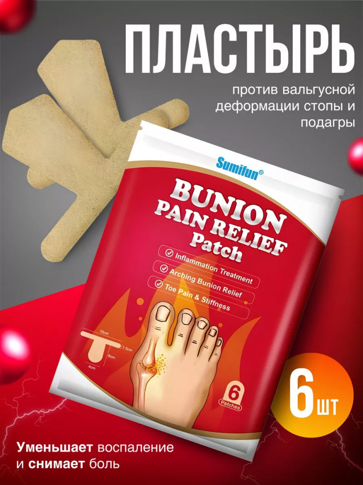 В данный момент этот товар отсутствует в продаже. Возможно, у нас найдется аналогичный или похожий товар здесь. Забудьте о дискомфорте и верните легкость походки! Пластыри Sumifun — это современное решение для тех, кто страдает от вальгусной деформации (косточки на ноге), артрита, подагры, бурсите, боли в суставах и скованности.