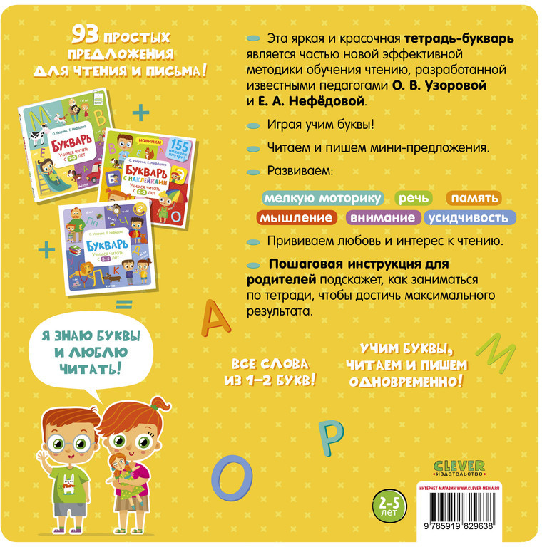 В дошкольный период память у ребенка непроизвольная, он лучше запоминает то, что вызвало какие-то эмоции. Ни для кого не секрет, что ребенок скорее запомнит яркую картинку или привлекательный видеоролик, чем монотонные наставления. «Тетрадь-букварь. Учимся писать и читать с 2–3 лет» создана именно с учетом психолого-педагогического развития детей дошкольного возраста. Материал подан в легкой игровой форме, а линейки развивающих пособий прекрасно дополняют друг друга. Этот яркий, красочный букварь основан на новой эффективной методике обучения чтению и письму, разработанной известными педагогами О. В. Узоровой и Е. А. Нефедовой. |