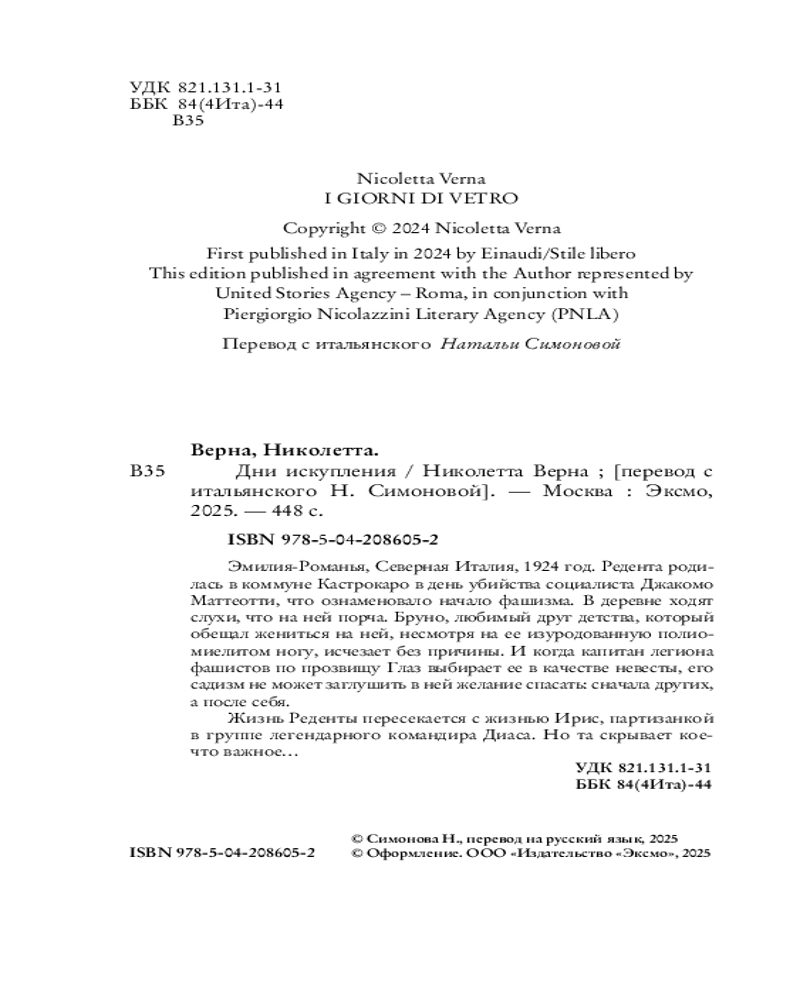 💳 Оплатить за товар можно при получении 🇰🇿 Есть бесплатная доставка по Казахстану 🎁 Копите бонусы с каждой покупки Серия: Novel. Актуальное историческое Эмилия-Романья, Северная Италия, 1924 год. Редента родилась в коммуне Кастрокаро в день убийства социалиста Джакомо Маттеотти, что ознаменовало начало фашизма. В деревне ходят слухи, что на ней порча. Бруно, любимый друг детства, который обещал жениться на ней, несмотря на ее изуродованную полиомиелитом ногу, исчезает без причины. И когда капитан легиона фашистов по прозвищу Глаз выбирает ее в качестве невесты, его садизм не может заглушить в ней желание спасать: сначала другие, а после я. Жизнь Реденты пересекается с жизнью Ирис, партизанкой в группе легендарного командира Диаса. Но та скрывает кое-что важное... |