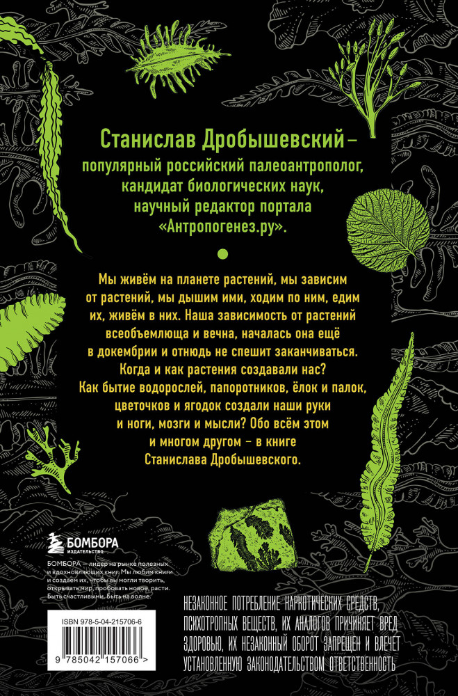 💳 Оплатить за товар можно при получении 🇰🇿 Есть бесплатная доставка по Казахстану 🎁 Копите бонусы с каждой покупки Серия: Книги Станислава Дробышевского Представьте, что история человечества — это всего лишь несколько последних страниц в толстой книге, написанной... растениями. Ведь это именно они создали воздух, которым мы дышим, почву, по которой ходим, и климат, в котором живём. Эта книга — захватывающее расследование, проведённое антропологом, который показывает, что наша судьба на протяжении миллионов лет была неразрывно связана с миром флоры. Прочитав её, вы больше никогда не пройдёте мимо обычной травинки, не вспомнив, что именно она и ей подобные — настоящие хозяева этой планеты. Потому что растения могут жить без нас, а мы без них — нет). |