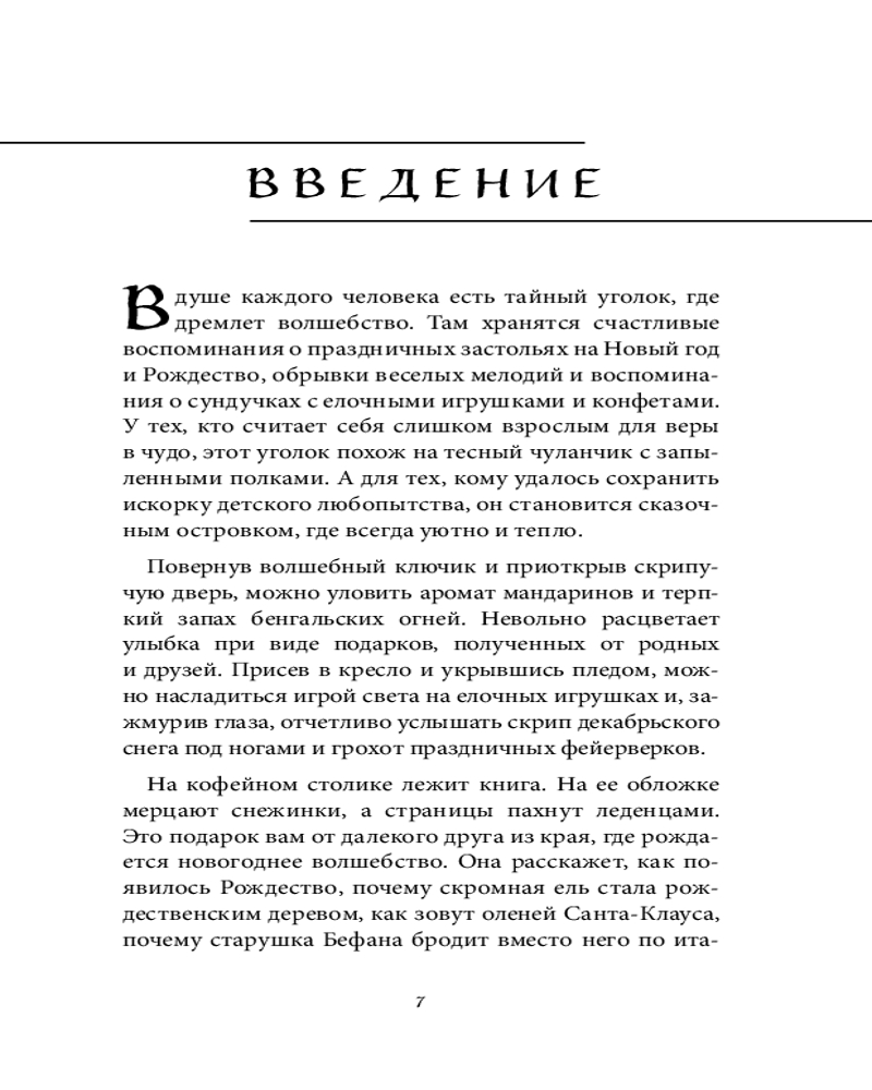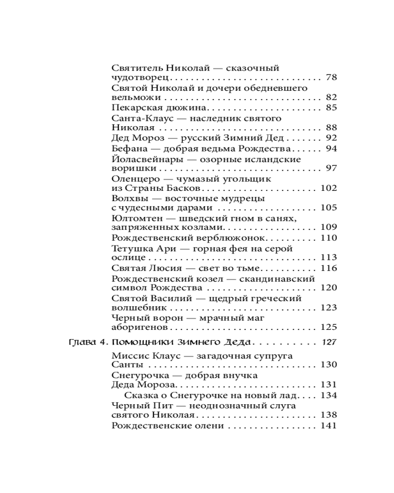 Вы узнаете, как ель стала символом Рождества, а омела и остролист — неизменными атрибутами праздника, кто еще, согласно народным легендам, пришел поклониться младенцу Христу помимо трех волхвов с дарами и как отмечали и продолжают отмечать зимние праздники по всему миру. А еще познакомитесь с добрыми зимними волшебниками со всего света: русским Дедом Морозом, американским Санта-Клаусом, баскским Оленцеро, потомком древних великанов, итальянцами Бефаной и Баббо Натале, французом Пер-Ноэлем и шведским рождественским гномом Юлтомтеном.