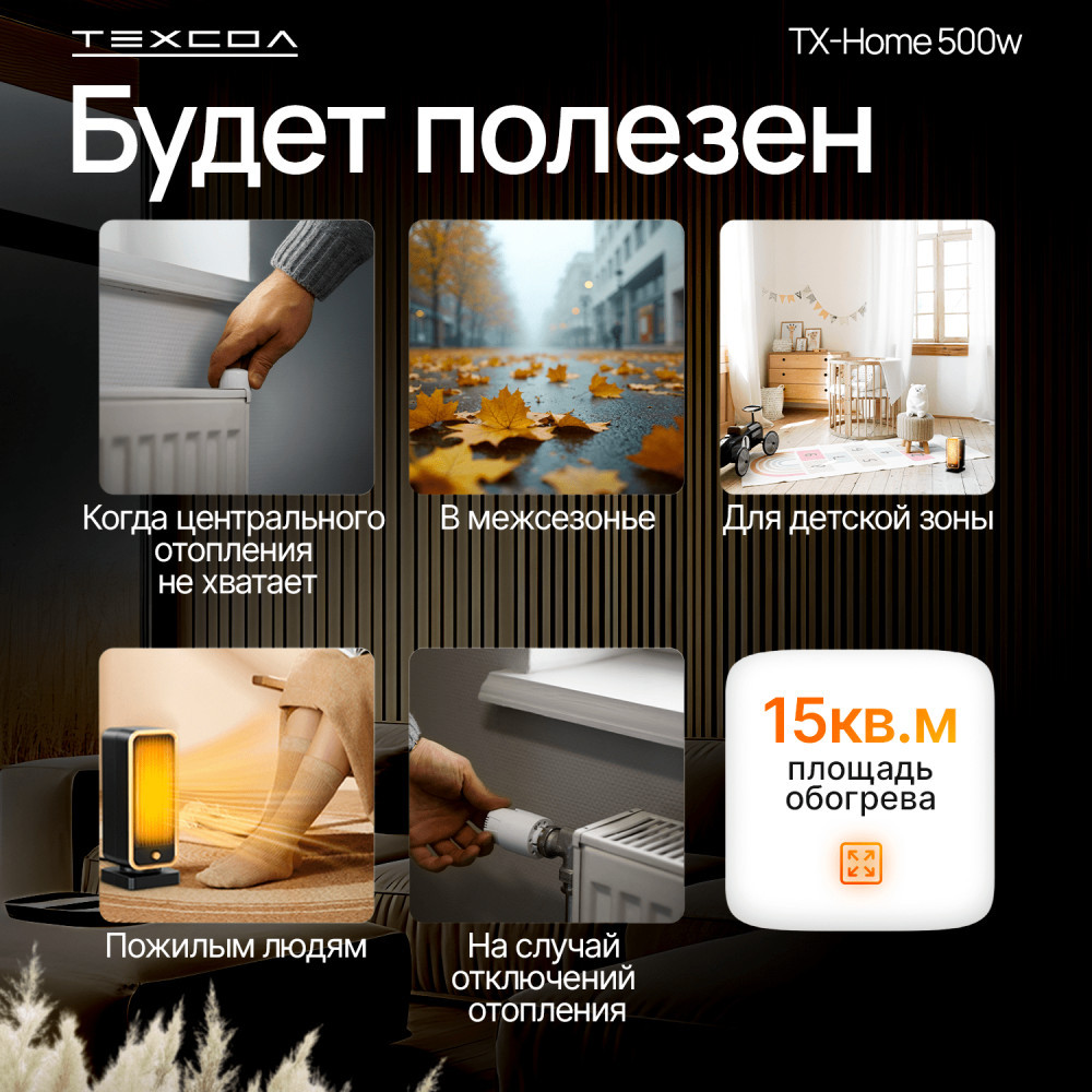 💳 Оплатить за товар можно при получении 🇰🇿 Есть бесплатная доставка по Казахстану 🎁 Копите бонусы с каждой покупки Компактный керамический обогреватель Техсол TX-Home быстро согревает рабочее место, спальню или детскую и экономно расходует электроэнергию. С низким уровнем шума, с защитой от перегрева и устойчивым корпусом, он создаёт комфортное тепло там, где это нужно именно сейчас. Рекомендуемая площадь до 15 м². |