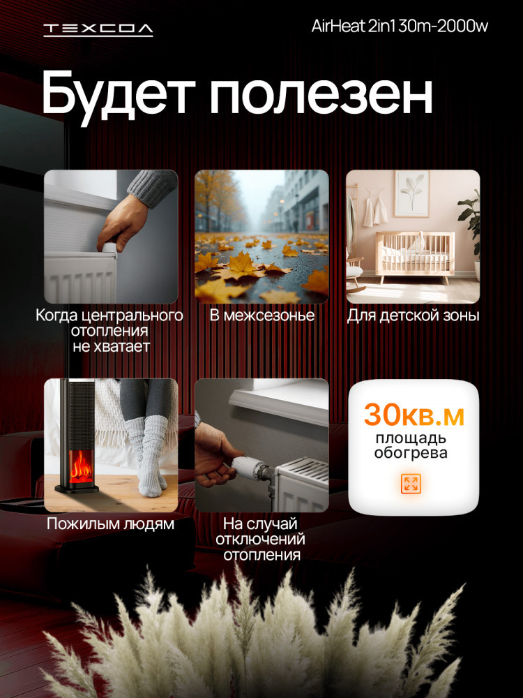 • в межсезонье, чтобы согреться утром и вечером без высоких счетов и пересушивания воздуха;