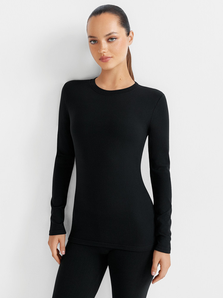 Облегающий женский лонгслив модель «Термо» в рубчик с длинным рукавом с терморегулирующим эффектом. Изготовлена из современного технологичного и легкого материала, который обладает высокими теплоизоляционными и влагоотводящими свойствами, создает терморегулирующий эффект, защищает от ветра, приятно ощущается на теле благодаря мягкому ворсу на внутренней стороне. Комфортно облегает и обеспечивает максимальную свободу движения. Подходит для повседневного использования. Рекомендовано носить при температуре от +5°С до −20°С.