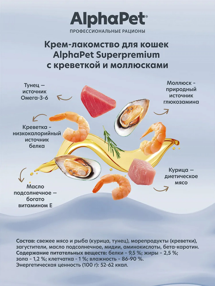 AlphaPet Крем-лакомство для кошек «Креветка и молюски»