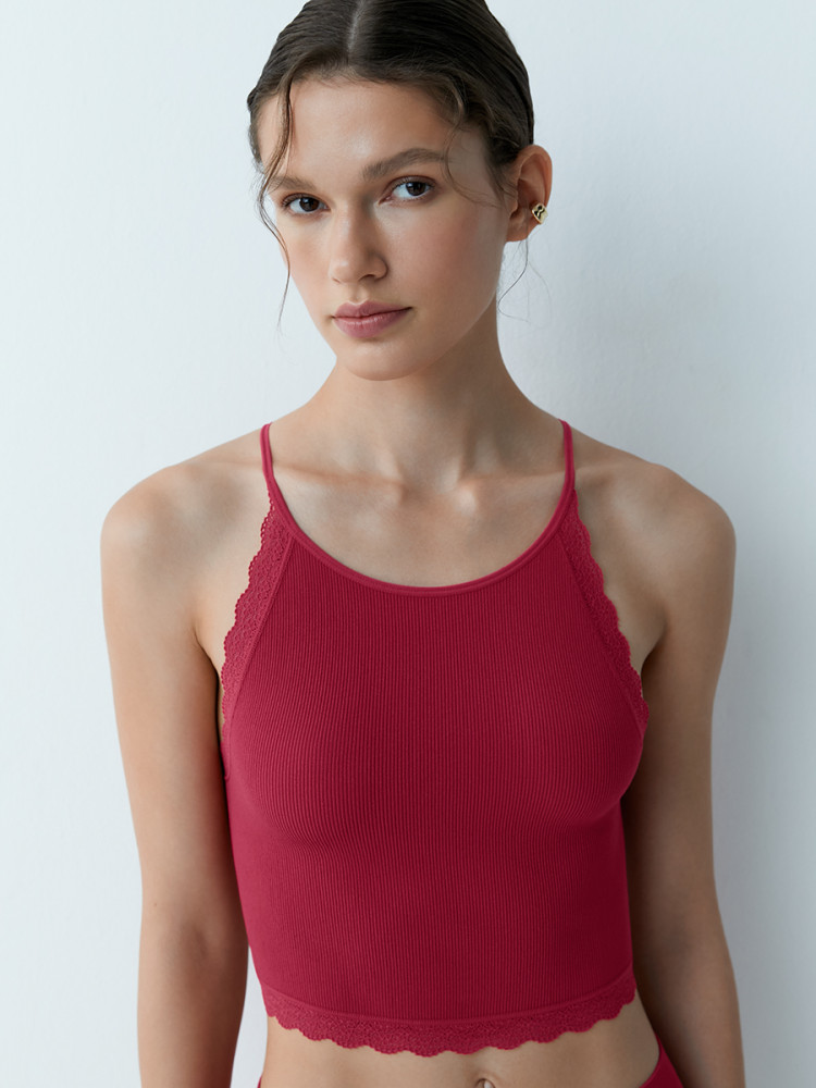 Комфортный укороченный топ в рубчик на тонких бретелях. Пройма и низ обработаны ажурным кружевом с изящным цветочным рисунком. Изготовлен по бесшовной технологии Seamless из мягкой микрофибры, которая отлично пропускает воздух и обладает нежной текстурой. Хорошо сохраняет форму и цвет. Топ превосходно облегает и приятно ощущается на теле благодаря отсутствию боковых швов. Эффектно дополнит самые разные образы: домашний, спортивный, повседневный, вечерний, романтичный или casual.