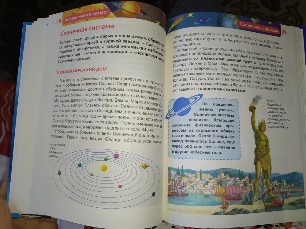 Книга хорошая, брали на подарок. Она скорее для ознакомления и определения направления интереса ребенка, если его заинтересует книга, то она может служить хорошей отправной точкой для покупки более масштабной энциклопедии. Если нет, то хотя бы не жалко денег. Единственное но, есть небольшие огрехи в книге, так например из 12 знаков зодиака, указаны графически всего 11, куда дели 12 знак, непонятно. Но опять же, цена небольшая, потом можно купить и подороже. Очень довольна девочками консультантами, очень вежливые и расторопные. Спасибо. Буду заказывать еще.