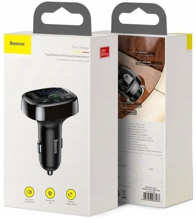 Автомобильное зарядное устройство Baseus MP3 Black подключается к бортовой сети авто через разъем прикуривателя, с двумя портами USB. Главное предназначение прикуривателя USB этого миниатюрного гаджета это быстрая и эффективная подзарядка аккумуляторов различных портативных устройств в салоне автомобиля.