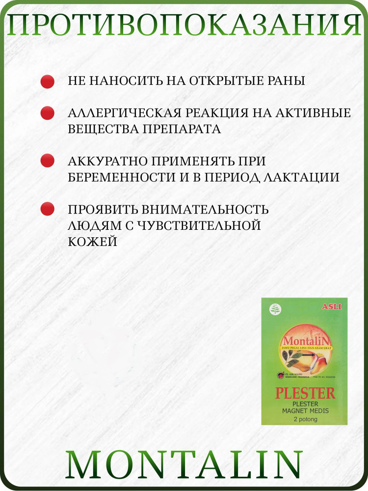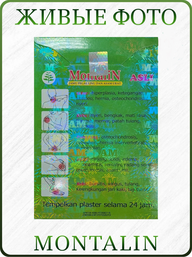💳 Оплатить за товар можно при получении 🇰🇿 Есть бесплатная доставка по Казахстану 🎁 Копите бонусы с каждой покупки Магнитно-травяной пластырь Montalin Asli — это отличный средство в линейке Монталин. Применять можно как с капсулами Монталин, так и отдельно. Можно использовать как разово — при болях, так и курсовым методом. Пластырь не имеет побочных эффектов и крайне полезен при лечении и профилактике таких заболеваний, которые указаны ниже. |