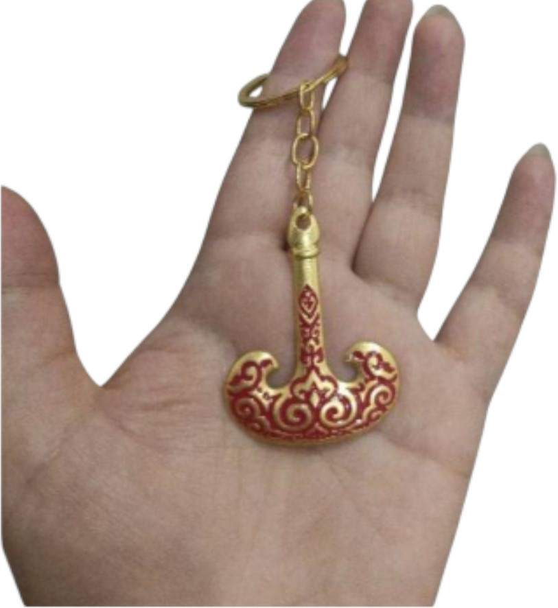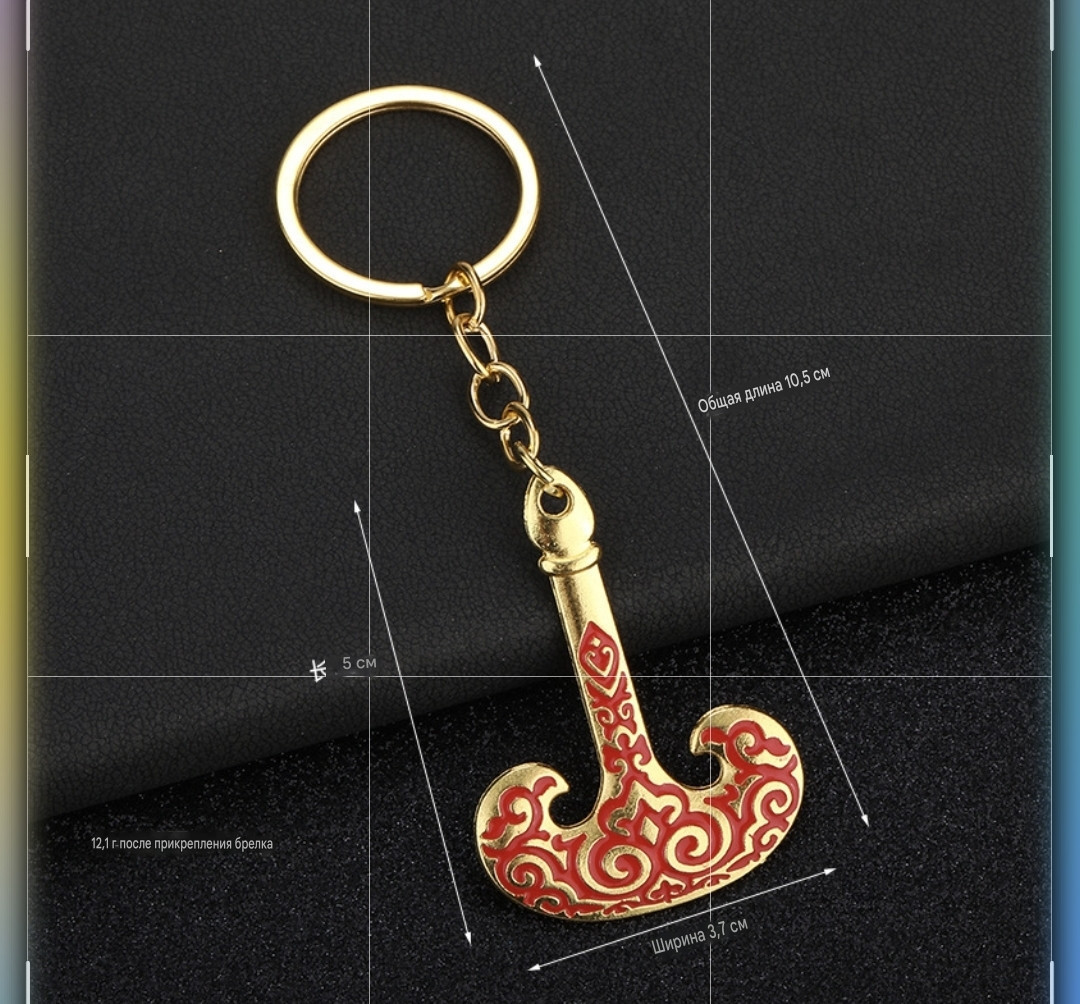 БрелокВ данный момент этот товар отсутствует в продаже. Возможно, у нас найдется аналогичный или похожий товар здесь. Этот яркий и стильный брелок выполнен из прочного цинкового сплава и имеет необычную форму секиры (топора). Основная часть брелока окрашена в насыщенный золотистый цвет, а лезвие секиры украшено глубокой красной эмалью с изящным узорчатым орнаментом. Брелок состоит из классического золотистого кольца для ключей и цепочки, надежно соединяющей кольцо с подвеской-секирой. Благодаря использованию цинкового сплава, изделие отличается хорошим балансом прочности и веса. |