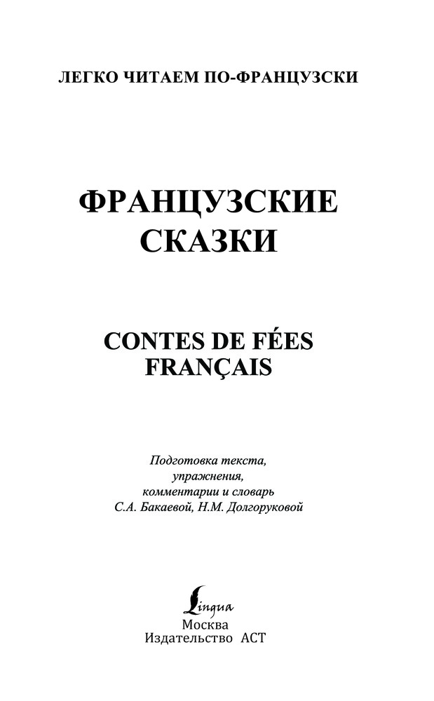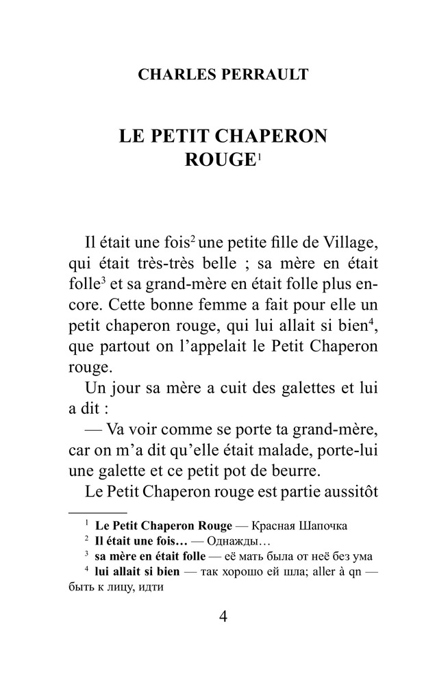 В данный момент этот товар отсутствует в продаже. Возможно, у нас найдется аналогичный или похожий товар здесь. Серия: Легко читаем по-французски В книгу вошли пять популярных французских сказок в литературной обработке Шарля Перро, среди них «Золушка», «Кот в сапогах», «Спящая красавица». Они оказали большое влияние на мировую сказочную традицию. Их отличает добрый юмор, увлекательный сюжет, а изящество стиля лишь подчёркивает красоту французского языка.